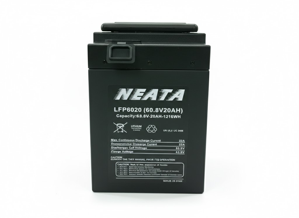 Neata Lithium LiFePO4 60.8V 20Ah – Puissance Intelligente et Durable La batterie Neata 60.8V 20Ah délivre une capacité énergétique de 1216Wh, garantissant une puissance constante même en côte ou sous forte charge. Elle est équipée d’un système de gestion de batterie (BMS) sophistiqué qui surveille chaque cellule pour prévenir les risques de surtension et optimiser l’équilibrage interne. Grâce à sa chimie Lithium Fer Phosphate, elle supporte des milliers de cycles de charge sans effet mémoire, offrant une longévité exceptionnelle qui surpasse largement les technologies traditionnelles au plomb ou au gel.