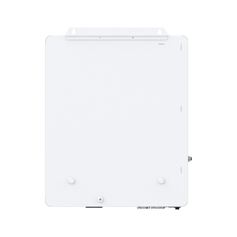 SR-HYP4850S100-H : Puissance nominale 5 kW, tension de sortie nominale 230 V AC ±5 % (monophasé / triphasé en parallèle), tension de la batterie 48 V, courant de charge maximum 100 A, nombre de MPPT : 1, plage de tension MPPT : 120 à 450 V DC, capacité de fonctionnement en parallèle : 1 à 6 unités, incluant une clé Wi-Fi (dongle). Dimensions : 584 × 456 × 216 mm.
